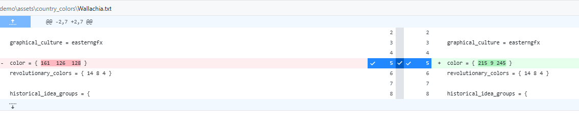 Diff in github with the file responsible for assigning country colors